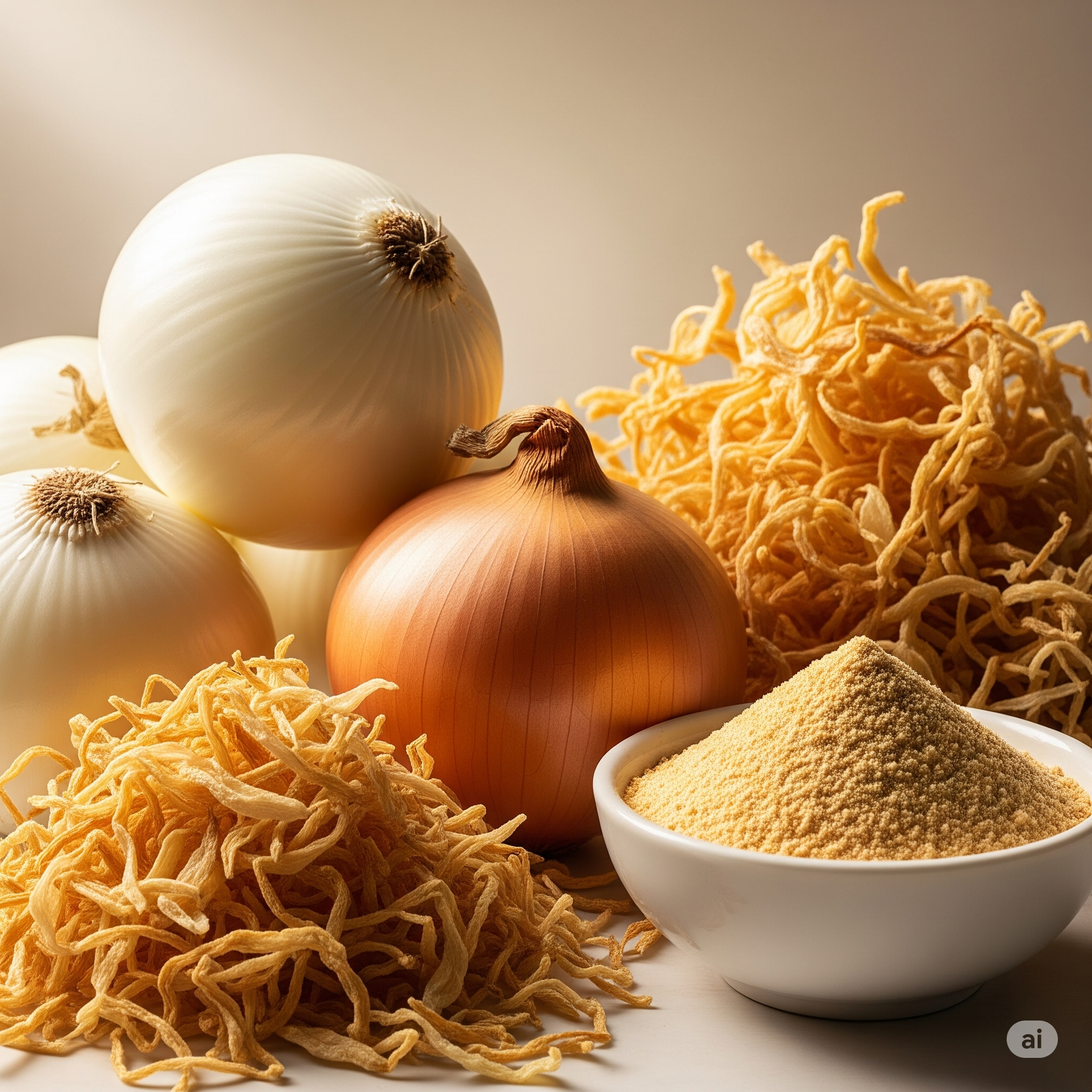 পেঁয়াজের ড্রাই বা শুকনো পেঁয়াজ, যা পেঁয়াজ গুঁড়ো নামেও পরিচিত, এর অনেক উপকারিতা রয়েছে। এটি সাধারণ পেঁয়াজের মতোই স্বাস্থ্যকর এবং রান্নার স্বাদ বৃদ্ধিতেও সহায়ক। শুকনো পেঁয়াজ ভিটামিন, খনিজ এবং অ্যান্টিঅক্সিডেন্টে ভরপুর যা শরীরের জন্য বিভিন্নভাবে উপকারী।